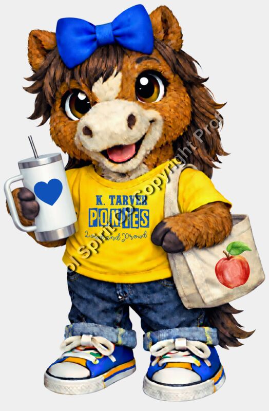 Show your K. Tarver Elementary pride in the cutest way with this Ponies spirit shirt! 🐴💙 Featuring an adorable plush pony mascot with a bow, coffee tumbler, and tote bag, this design blends cozy classroom vibes with stylish school spirit. The “K. Tarver Ponies – Loud and Proud” detail adds the perfect touch of pride for teachers, students, and staff. This trendy plush-style design is a fan favorite—perfect for everyday wear, spirit days, and matching with your teacher besties. Cute, comfy, and full of personality, this tee is made to stand out on campus! ✨ Plush pony mascot design (best-selling style!) ✨ Coquette bow detail for a trendy touch ✨ K. Tarver Ponies theme with school pride message ✨ Perfect for teachers, staff, and students ✨ Ideal for spirit days and everyday classroom wear